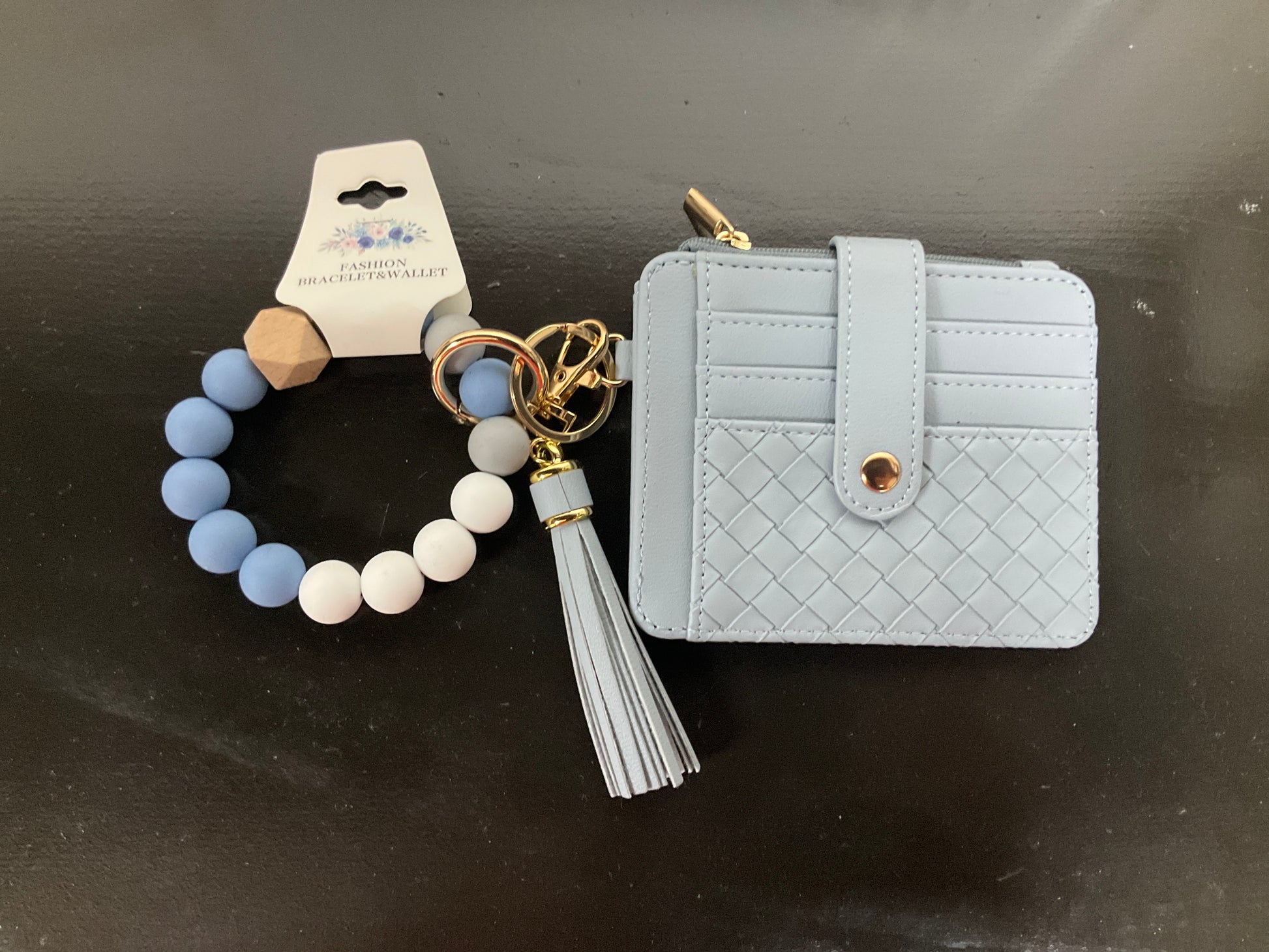 Nina quilted beaded keychain bracelet wallet